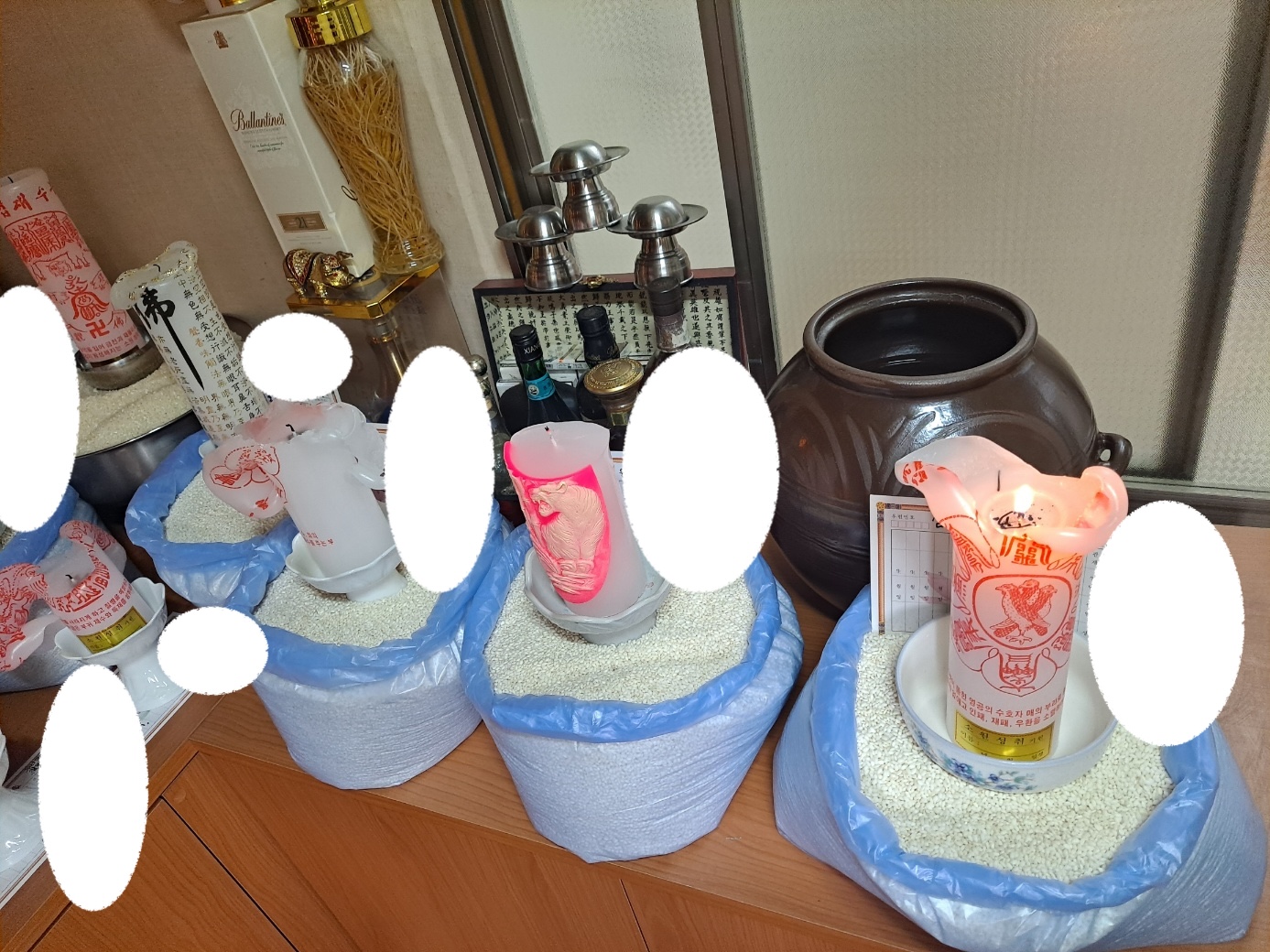 다음으로, 각 재가집의 초를 단에 올리고, 그 앞에 찹쌀을 둔다.
