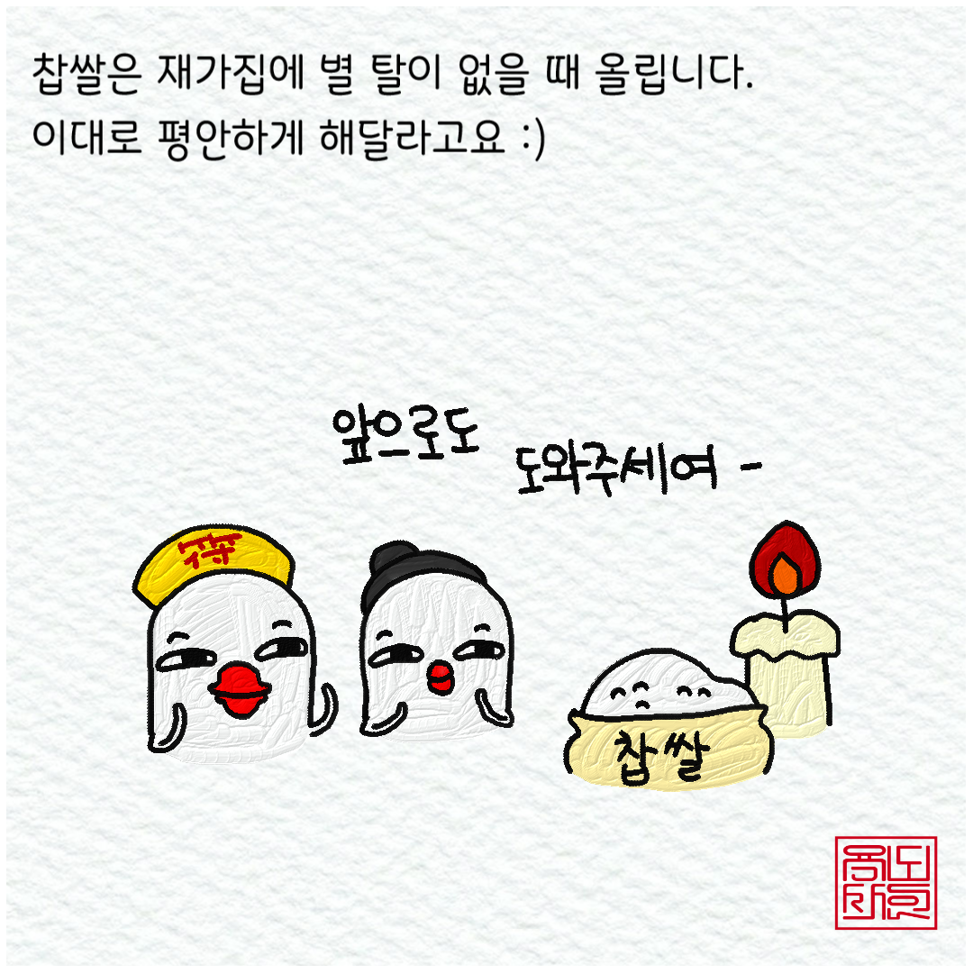재가집의 상황에 따라 올리고 드리는 쌀의 종류도 조금씩 다르다는 점도 말씀드린다.