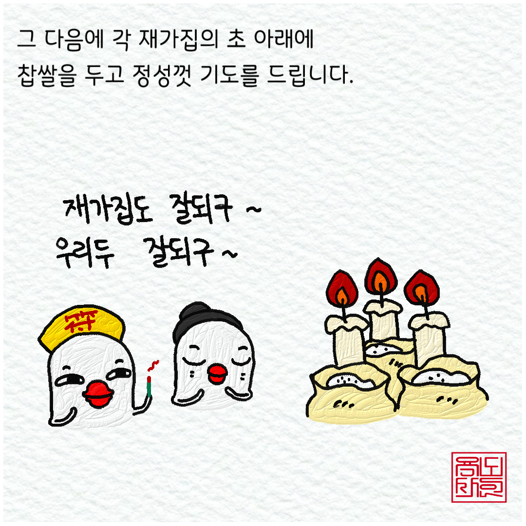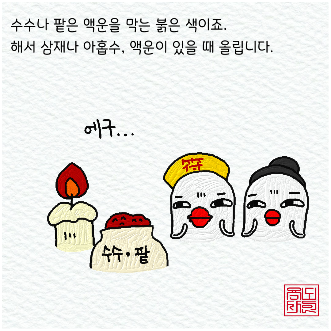 그래서 이런 분들을 위해서는 붉은 색 곡식을 활용한다. 수수와 팥이 그것인데, 액운을 막고 잡귀까지 쫓아내는 효과가 있으니 그렇게 하는 것이다.