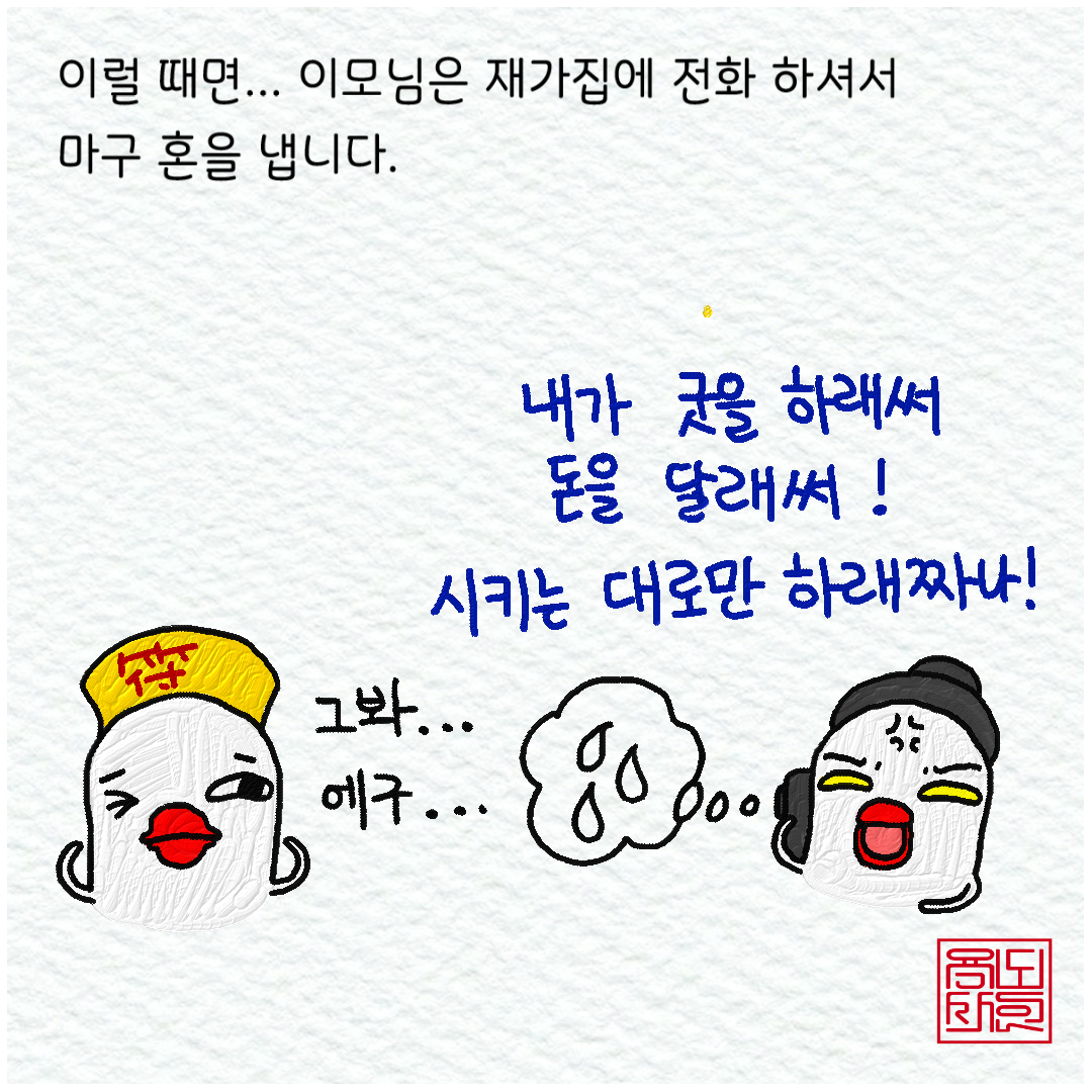 그리고... 우리 이모도 이럴 때는 화가 나서 전화기를 들곤 하신다.