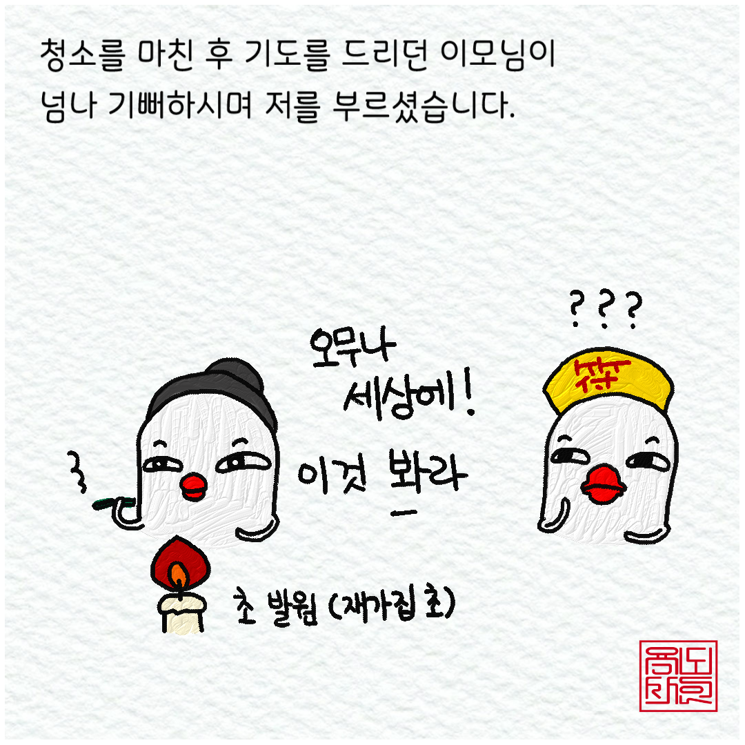 아무튼, 그런 일상을 수행 중에... 불을 켜고 재가집(재 설명 : 법당에 오시는 신도 분들을 뜻함)의 초들을 살펴 보시던 이모님이 반색을 하며 나를 부르셨다.